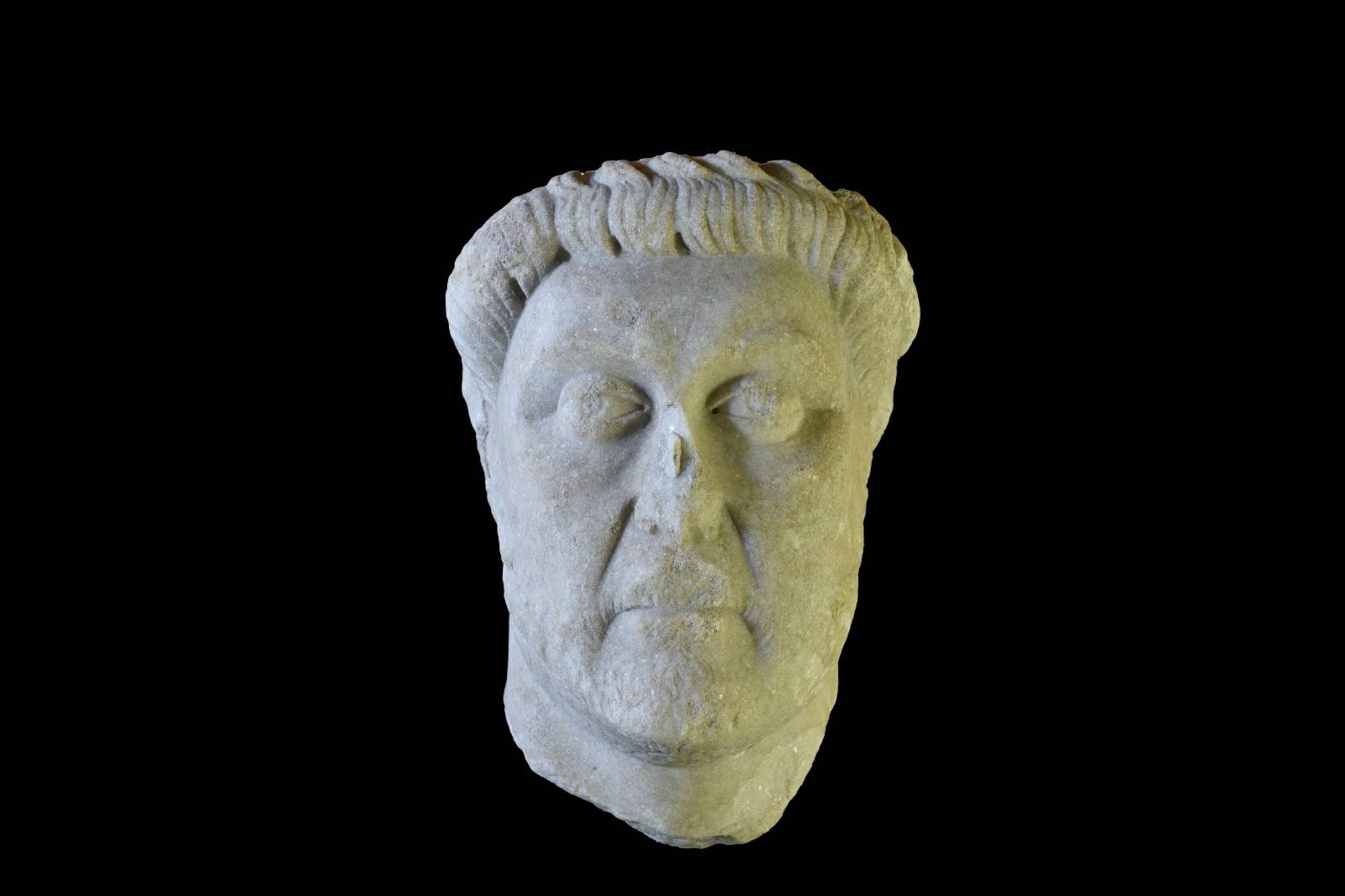 Yüksekliği 25 santimetre olan mermer heykel başı, M.S. 5. yüzyılın ikinci yarısına tarihleniyor. Erkek portresi olarak tanımlanan eserde boyun kısmı kırık ve eksik durumda bulunuyor. Heykelde saç ve kaş kıvrımları keskiyle işlenirken, göz bebekleri matkap darbeleriyle belirgin hale getirildi.
