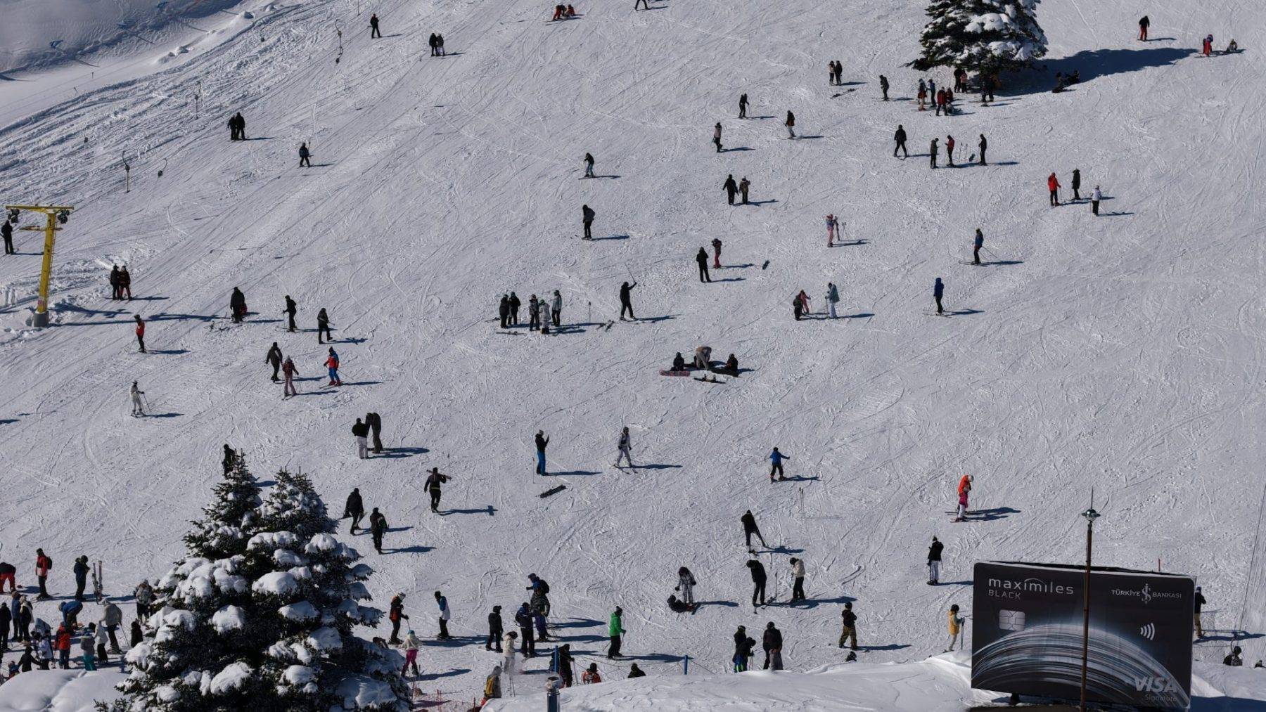 Güneşli havayı fırsat bilen tatilciler oteller bölgesine akın edince, kayak pistlerinde adım atacak yer kalmadı.