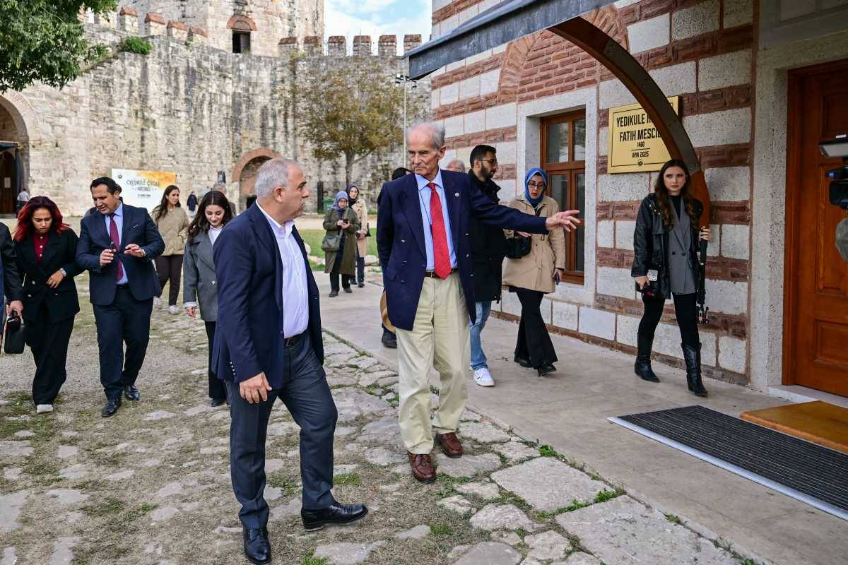 Başkan Turan, “Nikolai Tolstoy beyefendi de İngiltere’de yaşıyor. İlk defa Türkiye’ye geliyor. Buraya gelmeden önce yaklaşık 1 saat sohbet ettik. Torunu olduğu için gerçekten elinde çok sayıda bilgi, belge var. Kendisi de tarihçi ve yazar olduğu için de burayla ilgili ciddi bilgileri de var. İstanbul’un, Türkiye’nin Osmanlı’dan tebarüz eden geleneğimiz, hapse attığımız birinin torununu burada, o topraklarda dostlukla karşılıyoruz. Yedikule Hisarı, 20 yıl boyunca kapalı kaldı. Allah’a şükür artık Yedikule Hisarına yurt içinden, yurt dışından kültürel faaliyetler, sanatsal faaliyetler ve turistik faaliyetler için on binlerce insan geliyor. 1870’li yıllarda ki hapis hikayesinden bahsediyoruz. Oradan buraya 3 nesil sonra, 90 yaşında Nikolai Tolstoy buraya geldi” şeklinde konuştu.