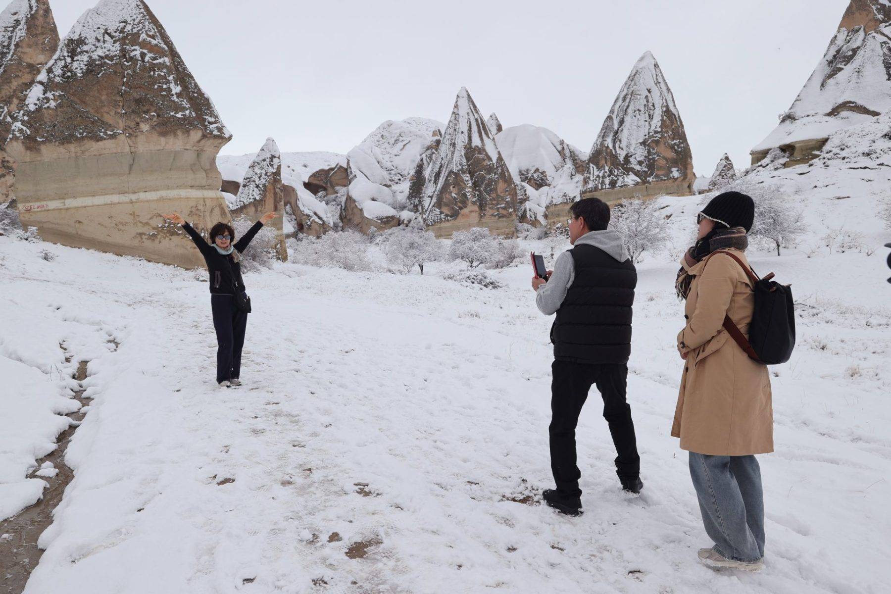 Çinli turist Lin Hua Ma, seyahate başlarken karlı bir Kapadokya görmeyi hayal ettiğini ve arzusuna kavuştuğunu belirterek, “Burada peri masalının içinde gibiyim. Her yer çok güzel görünüyor. Yaşadığım yere göre manzarası çok daha geniş. Kar ve Kapadokya harika.” dedi.