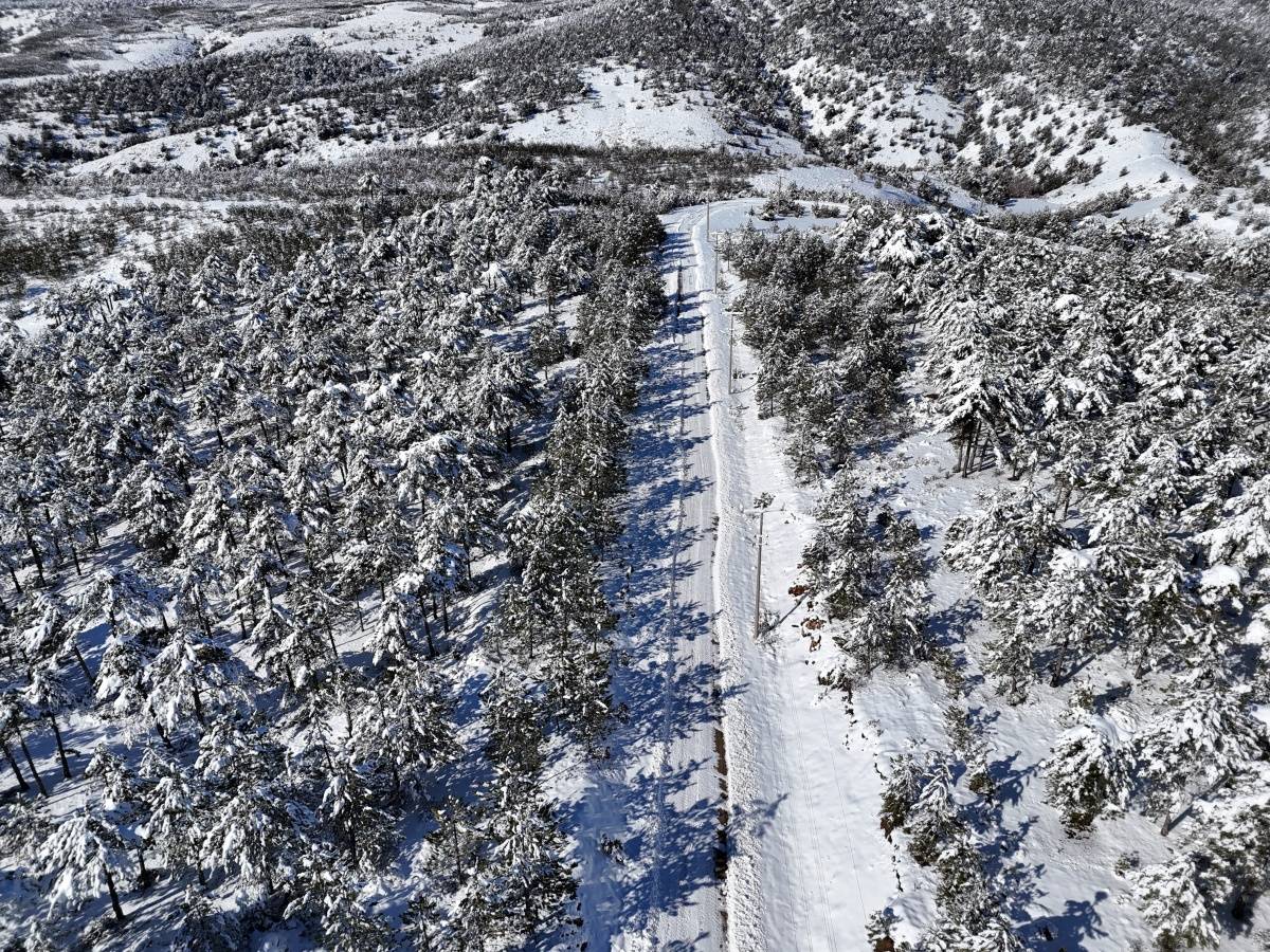 Dağlık alanlar, ağaçlar ve yolların karla kaplanmasıyla oluşan görüntüler adeta kartpostalları aratmadı. Doğanın beyaz örtüyle bütünleştiği manzaralar, Uşak’ın kış güzelliğini gözler önüne serdi.