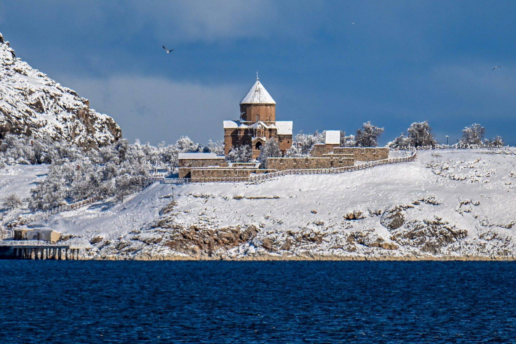 Van Gölü içindeki Akdamar Adası, hem tarihi hem de doğal güzelliği ile popüler turizm noktalarından biri olarak her yıl binlerce kişiyi ağırlıyor. Popüler nokta kar yağışı sonrası beyaz örtü ile kaplandı.