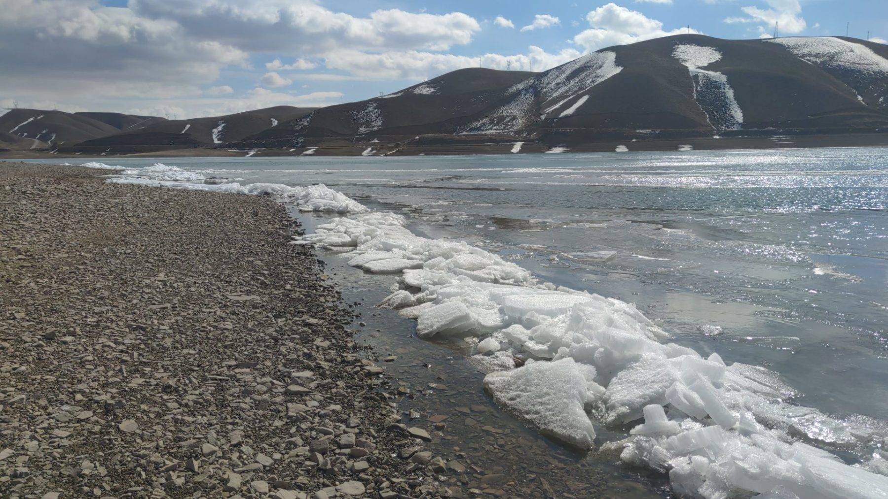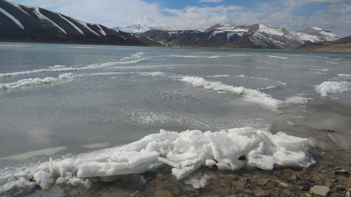 Göl yüzeyindeki suyun sadece yüzeyi donmakla kalmadı; rüzgarın etkisiyle kıyıya vuran dalgalar donarak kristalleşti. Ortaya çıkan manzara görsel şölen oluşturdu.
