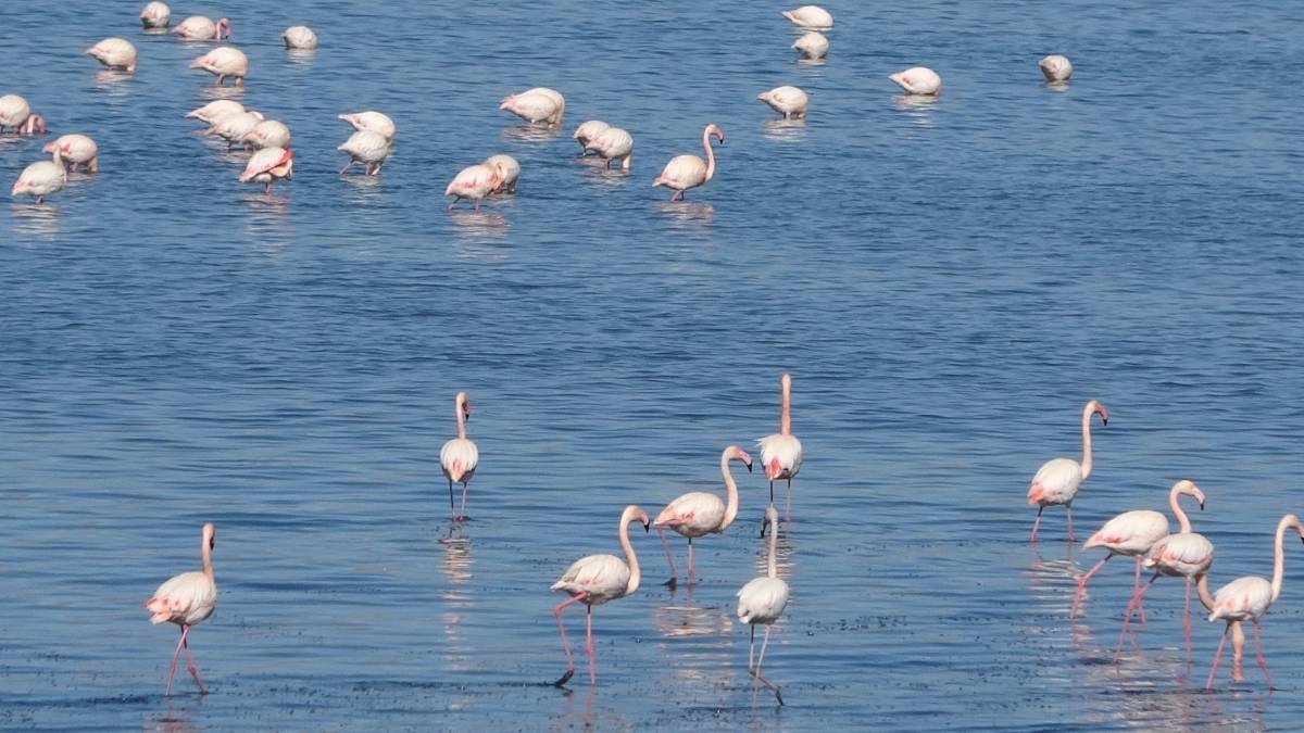 Türkiye’deki yaklaşık 450 kuş türünden yaklaşık 250’sine ev sahipliği yapan Van Gölü Havzası’nda konaklayan flamingolar, görüntüleriyle göz kamaştırıyor.