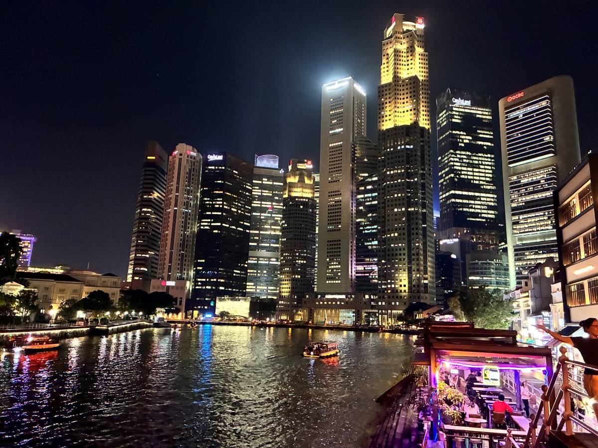 Singapore Nehri kıyısına inildiğinde şehrin sosyal nabzı hissediliyor. Kıyıda dizili restoranlar, suya vuran renkli ışıklar ve nehrin üzerinde ağır ağır ilerleyen küçük tekneler…