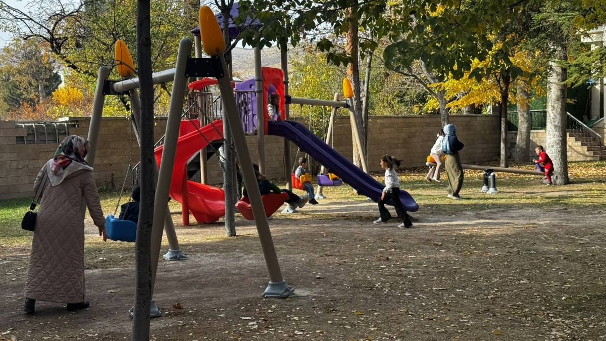 Çocukların yapraklar arasında oynadığı, gençlerin fotoğraf çektiği alanda hafta sonu tatilini fırsat bilenler yoğunluk oluşturdu.