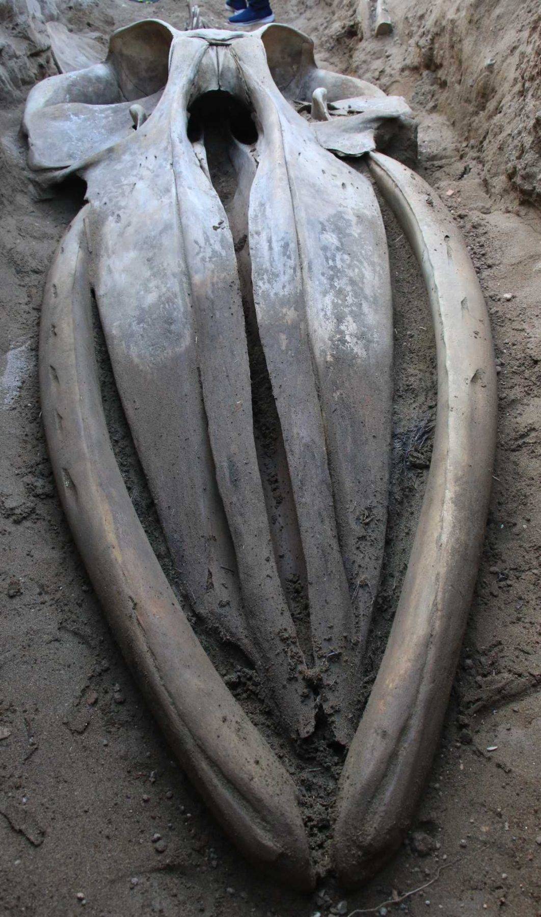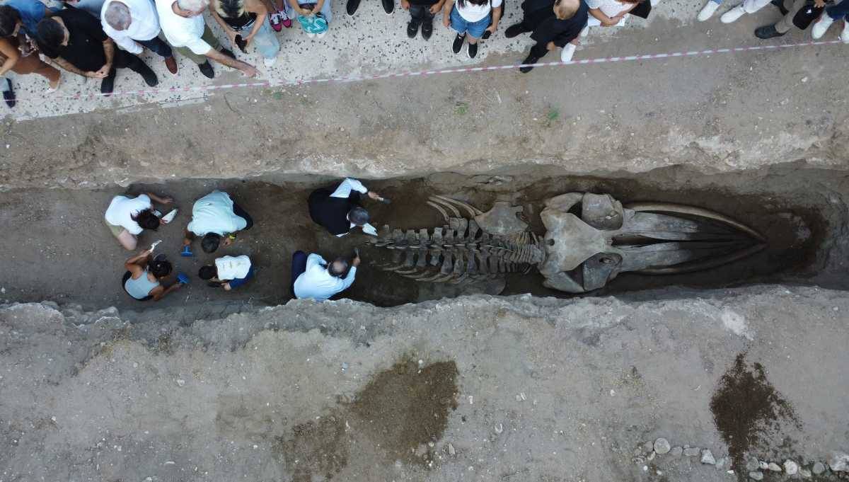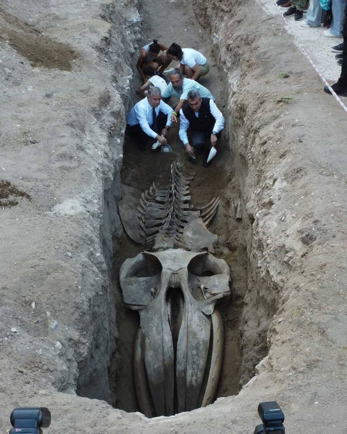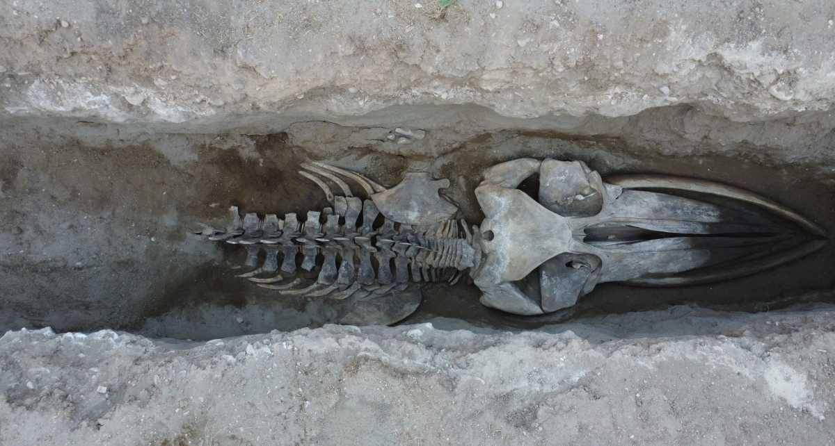 ‘Balinanın Sessizliği Bilime Dönüşüyor’ projesi kapsamında yürütülen keşif kazısının 4’üncü gününde balinanın 2 metrelik metrelik çene ve kafatası ile 5 metreden fazla olan göğüs bölgesinde ulaşıldı. Omurgasının kısmen ortaya çıktığı devasa deniz canlısının göğüs altı ile kuyruk kemiklerinin ise 2 gün içerisinde ortaya çıkarılması hedefleniyor.