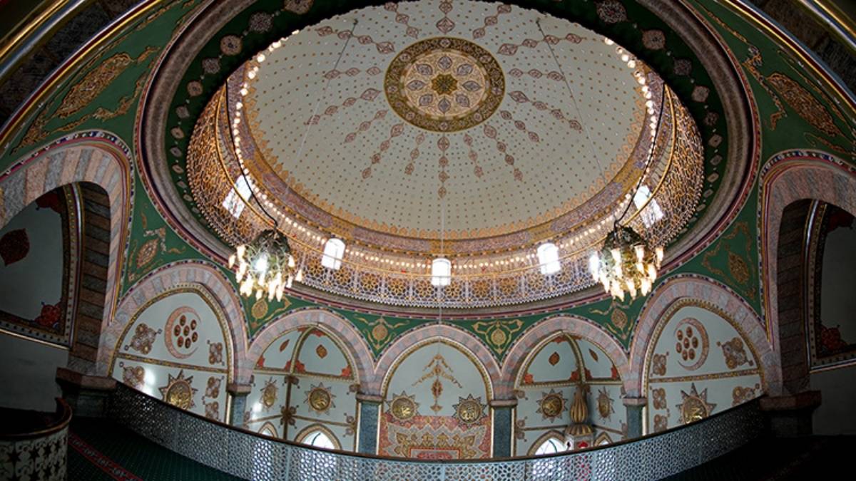 Kütahya’da Osmanlı’nın son döneminde inşa edilen tarihi Yeşil Camii, adını aldığı yeşil ve altın sarısı ağırlıklı iç süslemeleriyle dikkat çekiyor.